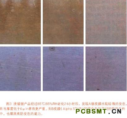相關(guān)因素中又以銀層厚度最為關(guān)建,務(wù)須將銀層厚度盡可能的減低。其次是前處理的微蝕不可讓銅面太過粗糙,而銀厚度分布的均勻性也是重點(diǎn)之一。至于銀層中的有機(jī)物含量,則可能從多點(diǎn)取樣銀層純度分析中而反向得知,其中純銀含量不可低于90%之原子比。